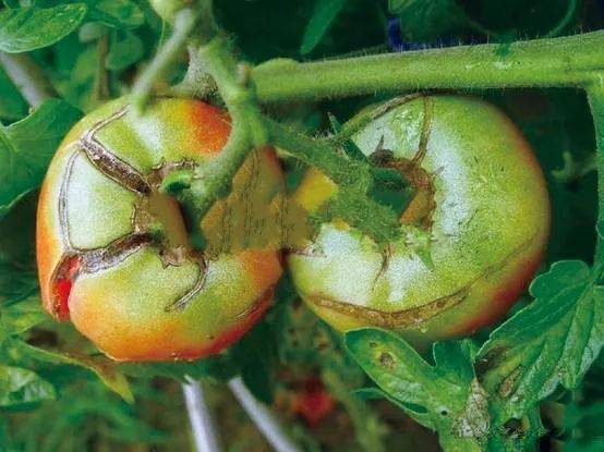 有些菜农在西红柿生育前期为防止植株徒长采取控水措施,而在进入结果期后又采用肥水猛攻的措施促进果实发育,在这种肥水充足的条件下,西红柿果肉生长速度快,果皮相对生长速度慢也是造成裂果的主要原因。